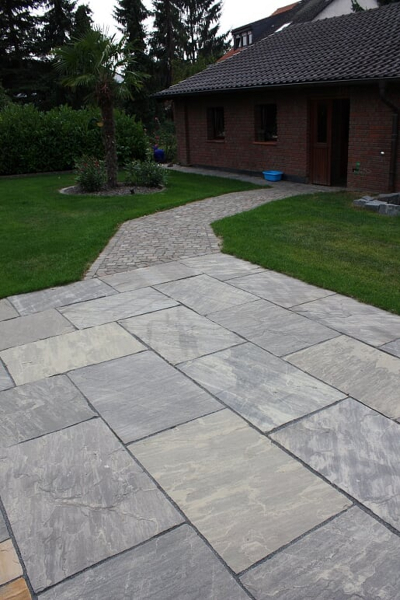 - einfache Natursteinplatten Verlegung durch eine einheitliche, angepasste Plattenstärke